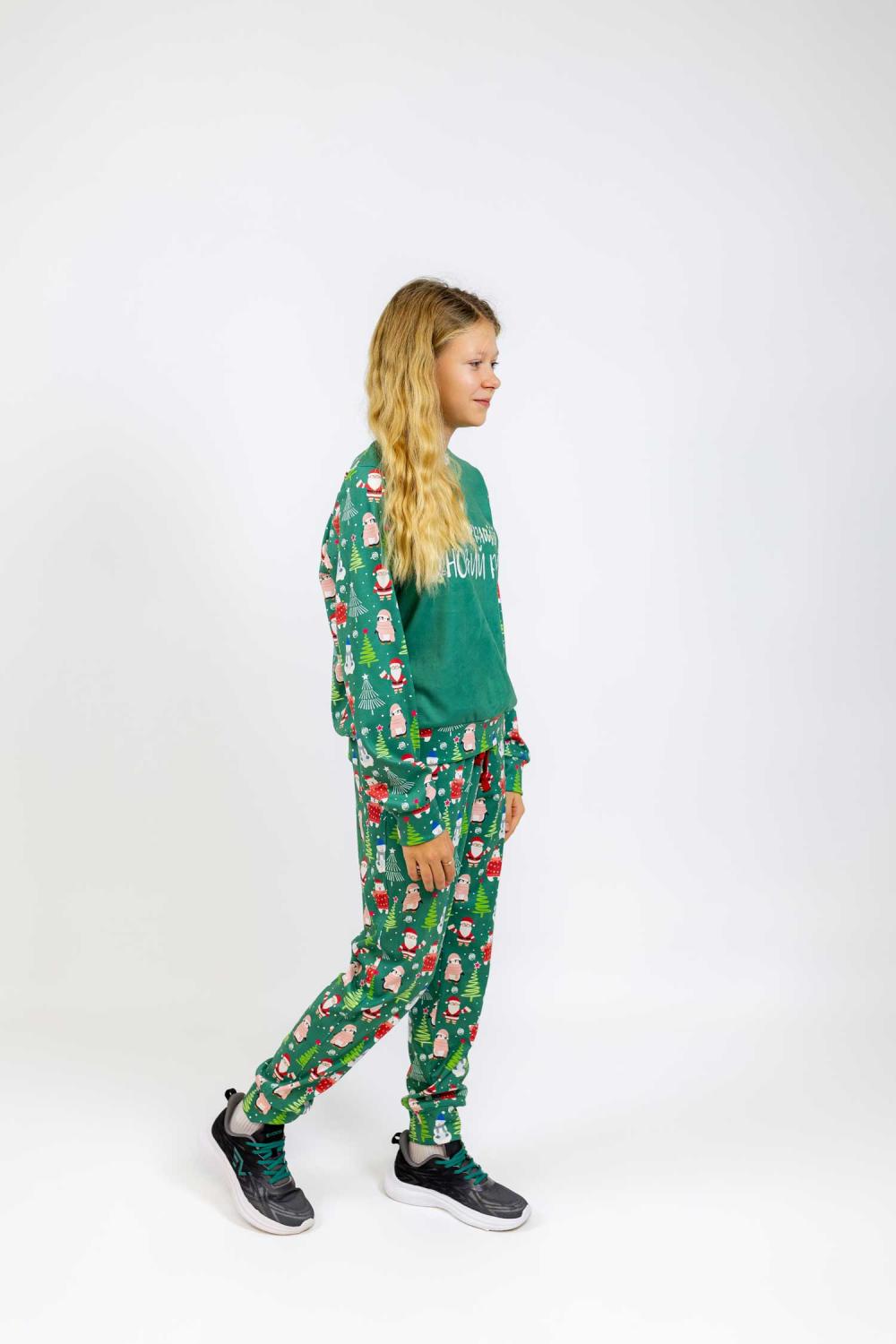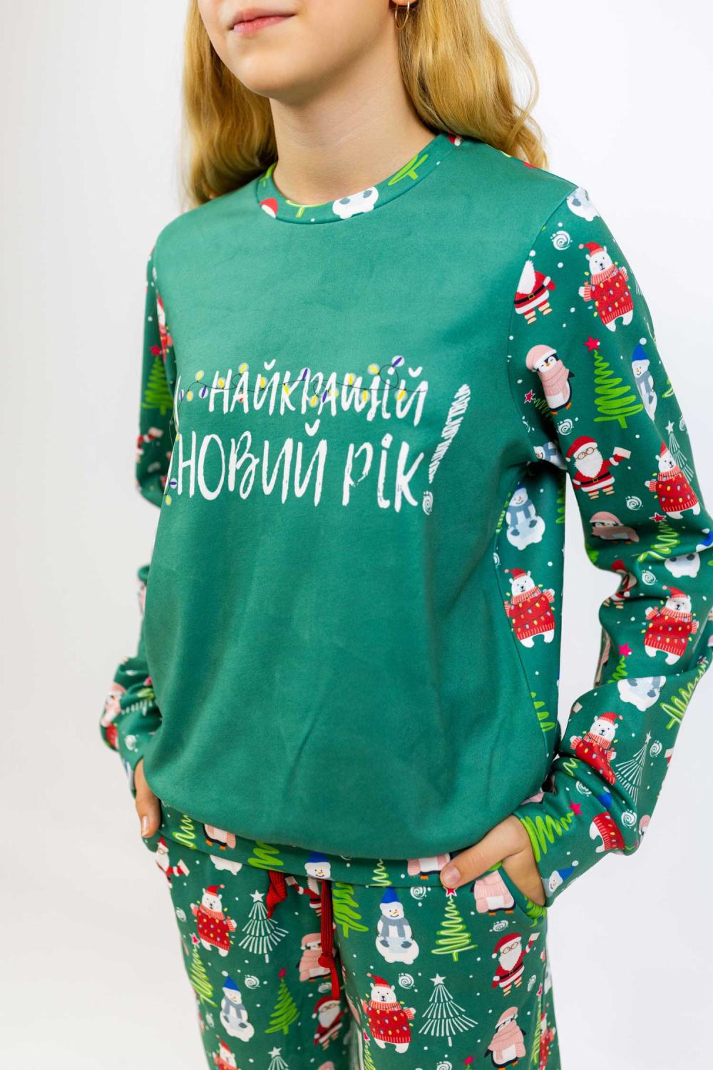 Дитячий спортивний костюм новорічний для дівчат — зелений